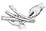 Allerdings ist bei der dargestellten Technik zu bedenken, dass sie zum Nachvollziehen im unterrichtlichen Zusammenhang nicht sehr geeignet ist. Ein Verkleben ist zudem nicht nötig, da der Pflanzensaft selbst für eine stabile Bindung sorgt. Auch das Hämmern ist mit einer ganzen Klasse wenig praktikabel. Zudem sind 40 cm lange Papyrus-Stücke zwar für antike Rollen ein angemessenes Maß, diese Menge für eine Klasse zu beschaffen, ist jedoch kaum möglich. Es entstehen beim Hämmern eventuell auch Produkte, die dem kostbaren „Pflanzen-Material" nicht angemessen sind und die nicht unbedingt zum Erfolgserlebnis werden. Deshalb bietet es sich an, kleinere Papyrus-Proben zu produzieren und die Pressung durch Rollen sowie ggf. mithilfe von Blumenpressen vorzunehmen.