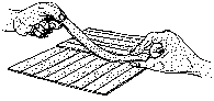 | Es wird an andere Blätter geklebt, die auf gleiche Weise hergestellt wurden. So entsteht eine Papyrusrolle, die bis zu 1,50 m lang sein kann. | ||