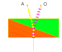 Kittfläche wird ein polarisierter Lichtstrahl in zwei senkrecht aufeinander