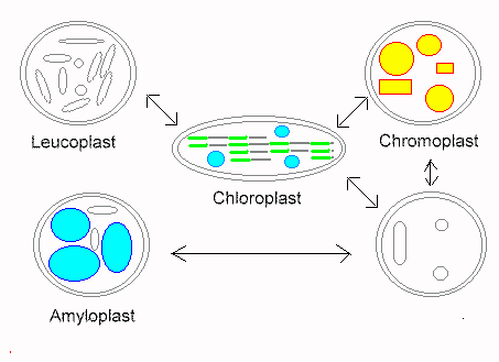 von Chloroplasten und Leukoplasten (Amyloplasten) kennengelernt. Sie entsteht
