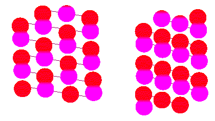 Mikrotubuli sind Röhren aus polymerisiertem Tubulin. Tubulin ist ein Proteindimeres, es besteht aus den beiden Untereinheiten alpha und beta. In der Abbildung sind die Röhren (oder Zylinder) aufgeschnitten dargestellt, so daß die Oberflächenstruktur in Aufsicht erscheint. Die beiden Darstellungen unterscheiden sich durch die Art der Kontakte zwischen den Tubulindimeren (Nach R. E. STEPHENS , K. T. EDDS, 1976).