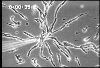 ameobae towards cAMP, lower magnification. From R. Firtel,
