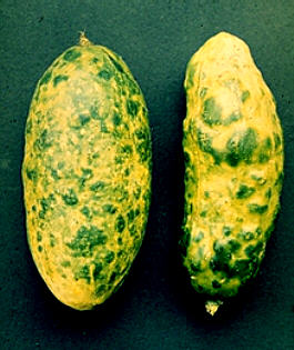 Gurkenmosaikvirus auf Zucchini und auf Gurke