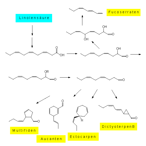 Biosynthese und strukturelle Verwandtschaft der Verbindungen, die aus verschiedenen Arten gewonnen wurden und deren Wirkung artspezifisch ist (Nach L. JAENICKE, 1977).