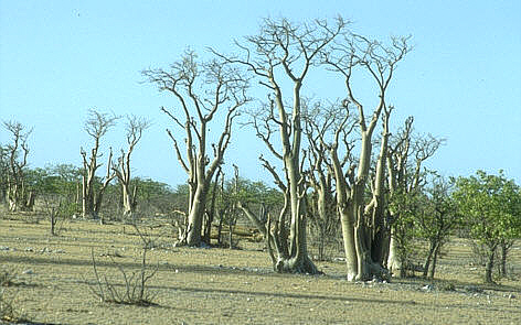 Stämme der Moringa ovalifolia. Einen größeren Bestand