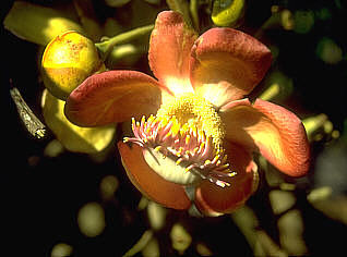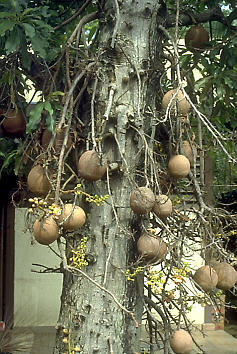 Blüte, aufgeplatzte Füchte und Früchte am Baum (Kaulikarpie)