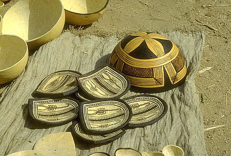 Kalebassen sind vielfach verwendar, in Westafrika wachsen sie u.a auf den Dächern von Rundbauten (Sarés), aus ihren Schalen sind Gebrauchs- und Kunstgegenstände herstellbar, durch Brandmarken erhalten sie dekorative Muster