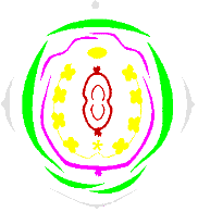 Colorcode: bracts - axis: light grey - sepals: green - petals: purple - stamens and honey leaves: yellow - carpels: brown