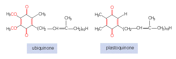 Quinones are involved in the redox reactions of mitochondria (respiratory chain) and chloroplasts (photosynthesis). It is distinguished between ubiquinones and plastoquinones. The two groups differ in their different side chains. Coenzyme Q, an unbiquinone, has a key position as a primary electron acceptor in photosystem II of photosynthesis.