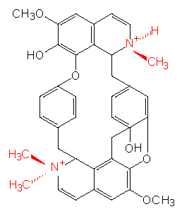 d-tubocurarine is one of the active principles of the arrow poison (curare) of South American Indians. A number of compounds with the effects of curare but with different chemical structures exist. All of them have one common feature: two ionized nitrogen atoms with a gap of 10 - 14 Angström between them