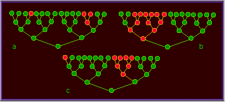 One of the most important is the C-locus that causes a dark red staining of the aleuron layer and the pericarp of the maize grain in a dominant condition. If a Ds-element jumps into the gene, colour synthesis is interrupted and colourless (yellow) grains result. An Ac activity within these grains causes a pattern of dark red areas on a light ground. This is explained by a reestablishment of the old state since the Ac element removes the Ds from the C-locus. This happens in several cells during the development of the maize grain. These cells are the origin of the aleuron layer and the pericarp and the back mutation can only be perceived in the clones that form out of the changed cells.