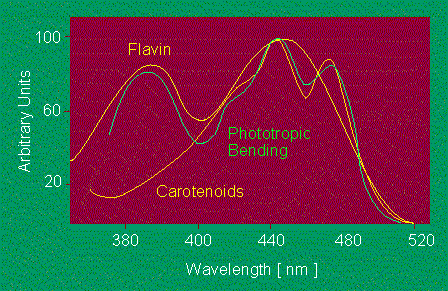 Phototropic Bending and Absorption of Carotenoids and Flavin |