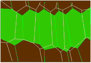 Scheme of the concertina-like tissue at the lower side of the primary joint of Phaseolus-cells in a fully turgescent (green) or a relaxed state (outlines; according to W. HAUPT, 1977).