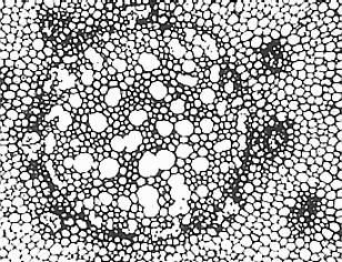 picture to the left:. cross-section through the stem with central strand of vascular bundles and peripheral leaf traces. picture to the right: longitudinal section through the growing point and the stem section beneath it, A: apical cells, below the differentiating cells of the conducting elements: HYD (=hydroids), ST: stereids (= enhancing elements). (C. HEBANT, 1977)