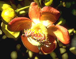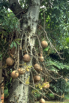 Blüte, aufgeplatzte Füchte und Früchte am Baum (Kaulikarpie)