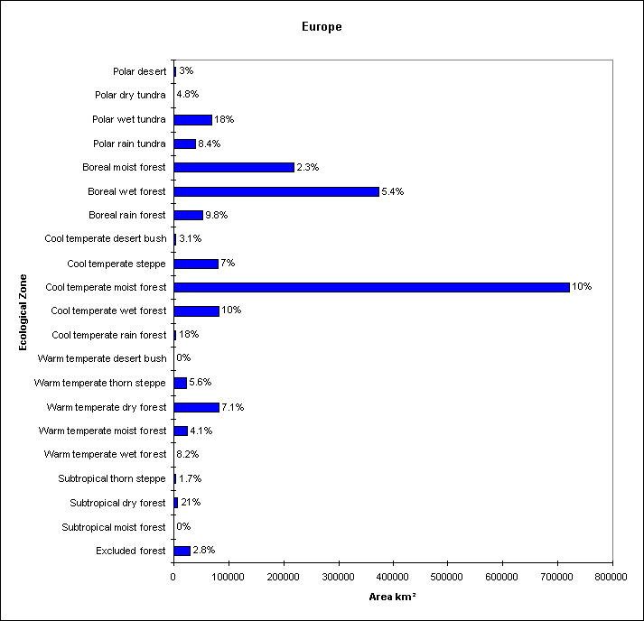 Bar chart showing the total area of forest in each Ecological zone