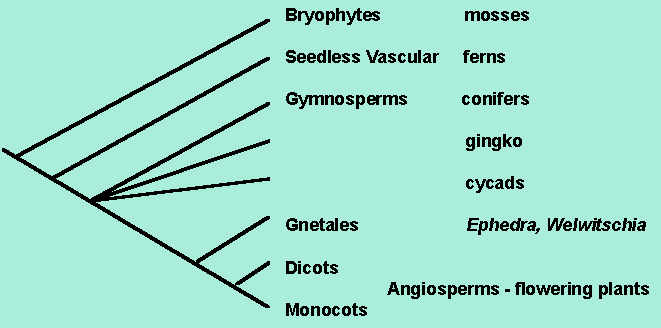 Magnoliophyta - Ginkgophyta - Cycadophyta - Gnetophyta - Pinophyta \ \ / \ / \ \ / \ / _____\_______________________|__________________________|Arrangement of seed plants by Goremykin et al. (1997)