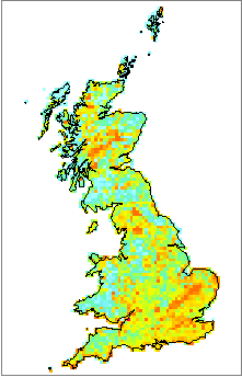 For species distribution maps that are divided into grid cells, the range sizes of the species can be quantified as counts of the numbers of grid cells occupied. The scores from these measures depend strongly on the spatial scale of the study (both the total survey extent and the gridcell size). For example, bluebells may have a narrowly restricted range within Europe, but are widespread within Britain.