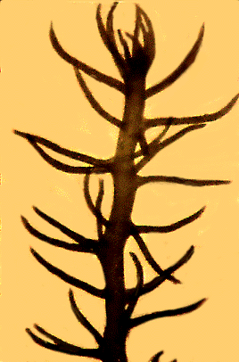 Vegetative axis showing divided leaves with cylindrical lobes.