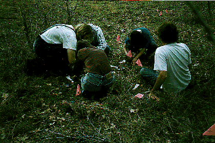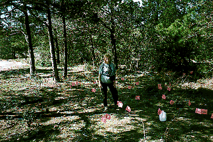 At each of eight study sites, soil samples are removed for analysis of spore dispersal distances and gene flow potential.