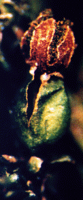Sporophyte capsule rupturing through the perianth and dehiscing, releasing spores