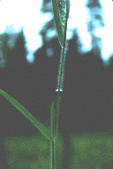 54. Poaceae (Gramineae) - Grass; stems round, internodes usually hollow; leaves 2-ranked, sheaths open or sometimes closed, ligule present; bracts of glumes, lemma and palea; perianth of 0-3 lodicules; stamens usually 3; fruit a grain or caryopsis.