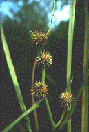 55. Sparganiaceae - Bur-reed; rhizomatous aquatic herbs; leaves alternate, simple, ± linear, erect or floating; flowers imperfect, plants monoecious; in globose heads, staminate heads above the pistillate ones; 3 or 6 sepaloid tepals; stamens 3 or more; carpels 1.