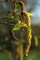 7. Betulaceae - Birch, alder; Deciduous trees or shrubs; leaves simple, serrate; staminate flowers in catkins.