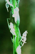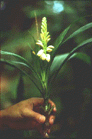60. Orchidaceae - Orchid; herbaceous perennials; leaves 2-ranked; flowers 3-meroud, zygomorphic; petals 2-lateral and one a labellum or lip; pollinia often produced; ovary inferior.