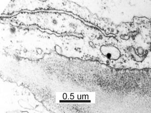 In addition to the actin and tubulin systems, membranes provide a pathway of movement. New lipid produced in the ER, moves to the Golgi apparatus where it picks up material for secretion. Vesicles from the Golgi pass out of the cell, delivering packages of cell wall material as they fuse with the plasma membrane. |