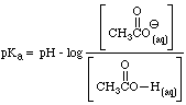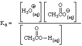 In our discussion of conductance, we introduced the term acidity constant, Ka, as a measure of the concentration of hydronium ions produced by the dissociation of a compound when it was dissolved in water. In the case of acetic acid, the acidity constant is given by the expression