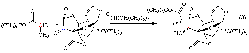 An amazing aldol-type reaction was involved in the total synthesis of ginkolide B, one of the active components in extracts from the Ginko biloba tree. Equation 3 outlines this key step.