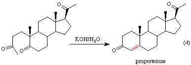 Equation 4 depicts an intramolecular crossed-aldol reaction that constituted the last step in a total synthesis of racemic progesterone. Even though the reaction conditions were very mild, the intermediate