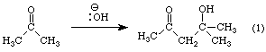 Treatment of acetone with base results in the aldol reaction shown in Equation 1.