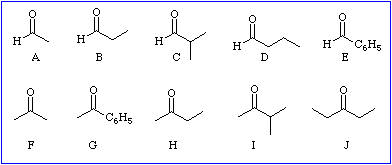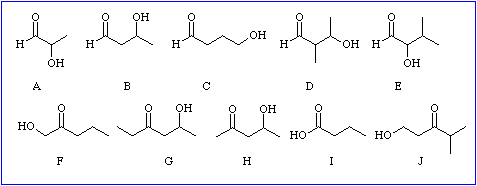 Exercise 2 Enter the letter of any b-hydroxyaldehyde or b-hydroxyketone into the text field: