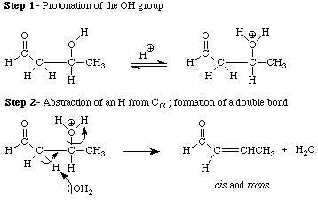 Like other alcohols, b-hydroxyaldehydes and b-hydroxyketones undergo dehydration to produce alkenes. In fact, it is difficult to isolate b-hydroxyaldehydes and b-hydroxyketones because they are very prone to dehydration.