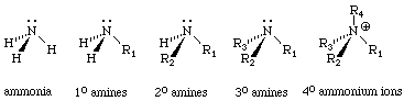 There are several ways of looking at and classifying amines. Figure 1 views amines as derivatives of ammonia in which one or more hydrogen atoms are replaced by alkyl or aryl groups.