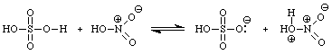 Exercise 2 Nitric acid is often used as a nitrating agent in electrophilic aromatic substitution reactions, i.e. it is used to replace an H atom with an NO2 group. The reaction is catalysed by the addition of sulfuric acid, which is a stronger acid than HNO3. Addition of H2SO4 to HNO3 sets up the following equilibrium: