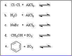 Entries 10-13 in Table 1 share a common structural feature, namely that the electrophilic atom in each case has an unfilled valence shell. The empty orbital is able to accomodate an additional pair of electrons. Consequently, SO3, BF3, AlCl3, and FeBr3, undergo addition reactions when treated with nucleophiles. The general pattern of reactivity is outlined in Scheme 3.
