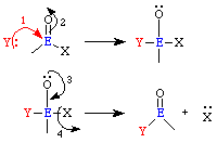 Electrophiles of this type undergo nucleophilic substitution because the electrophilic center has a filled valence shell. In order to avoid violating the filled shell rules, formation of the Y-E bond must be accompanied by cleavage of the E-X bond; a 1,2-punch, if you will. Equations 1 and 2 present familiar examples of this type of reaction.