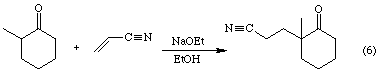 By contrast, direct alkylation of 2-methylcyclohexanone with acrylonitrile yields the regiosiomer shown in Equation 6.