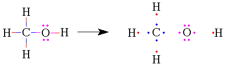 To determine the formal charge of an atom within a molecule, separate the atom from its bonding partner(s), dividing all bonding electrons equally between the bonded atoms. Then compare the number of electrons that "belong" to each atom to the atomic number of that atom. Figure 1uses color coding to illustrate the procedure for methane, CH4.