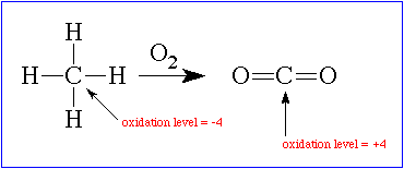 Most atoms have one or two stable oxidation states. Carbon has 9!! Many of the reactions that organic molecules undergo involve changes in the oxidation level of one or more carbon atoms within the compound. For example, during the combustion of methane, which produces carbon dioxide, the oxidation level of the carbon atom changes from -4 to +4: