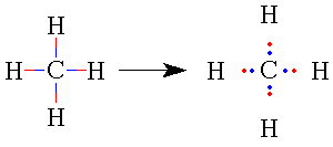 Since carbon is more electronegative than hydrogen, both electrons from each C-H bond are assigned to the carbon. Counting its two inner shell electrons, the carbon has 10 electrons assigned to it. Its oxidation level is the sum of its nuclear charge (atomic number) and the its electronic charge; 6+ (-10) = -4. The oxidation level of each hydrogen atom is 1 + (0) = +1. Note that the sum of the oxidation levels of all of the atoms in the molecule equals zero. This is always true of neutral molecules and provides a convenient way for you to check your calculations.