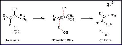 What is the compound that was formed in Ethyl's reaction? P1 P2 P3 As Figure 3 makes clear, each reaction has a different activation energy leading to a different transition state. Figure 4 illustrates three stages on the path from reactants to cis-2-butene. Note that the figure implies that the product arises from one particular conformation of 2-bromobutane. In the transition state the dashed red lines represent bonds that are partially made or broken.