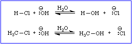 In our discussion of acid-base chemistry we alluded to the similarities between the reactions of NaOH with HCl on the one hand and CH3Cl on the other. Scheme 1 compares the two.