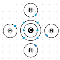 The molecule methane (chemical formula CH4) has four covalent bonds, one between Carbon and each of the four Hydrogens. Carbon contributes an electron, and Hydrogen contributes an electron. The sharing of a single electron pair is termed a single bond. When two pairs of electrons are shared, a double bond results, as in carbon dioxide. Triple bonds are known, wherein three pairs (six electrons total) are shared as in acetylene gas or nitrogen gas.