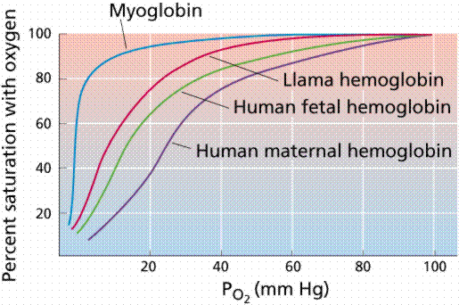 Respiratory pigments increase the oxygen-carrying capacity of the blood. Humans have the red-colored pigment hemoglobin as their respiratory pigment. Hemoglobin increases the oxygen-carrying capacity of the blood between 65 and 70 times. Each red blood cell has about 250 million hemoglobin molecules, and each milliliter of blood contains 1.25 X 1015 hemoglobin molecules. Oxygen concentration in cells is low (when leaving the lungs blood is 97% saturated with oxygen), so oxygen diffuses from the blood to the cells when it reaches the capillaries.