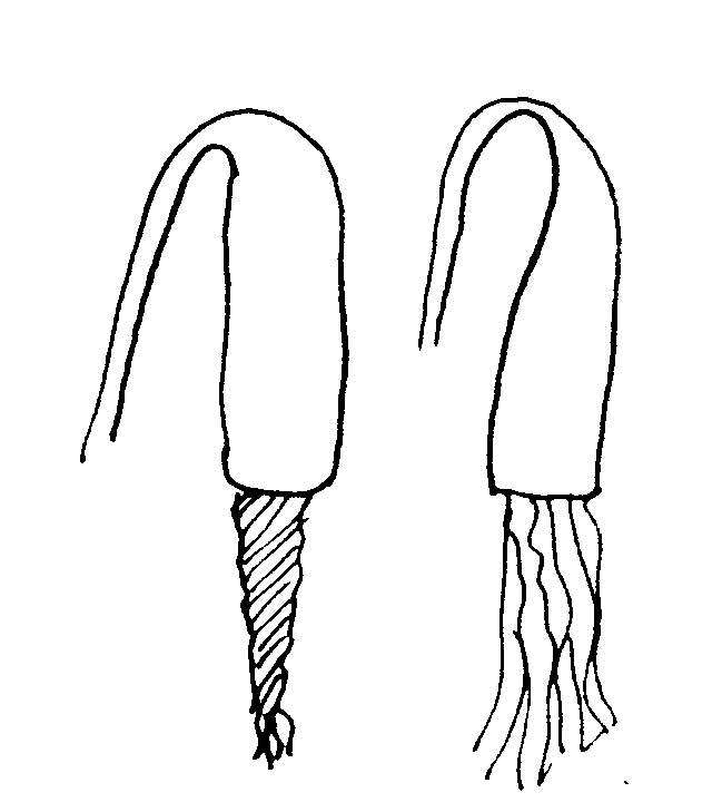 | Tortula Peristome teeth long and hair-like. Wet Teeth elongate and are tightly wrapped around each other. |