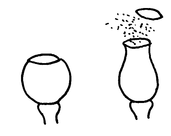 | 2. Stalk | stronger, slow-growing | grows rapidly (hours!) once spores ripe |